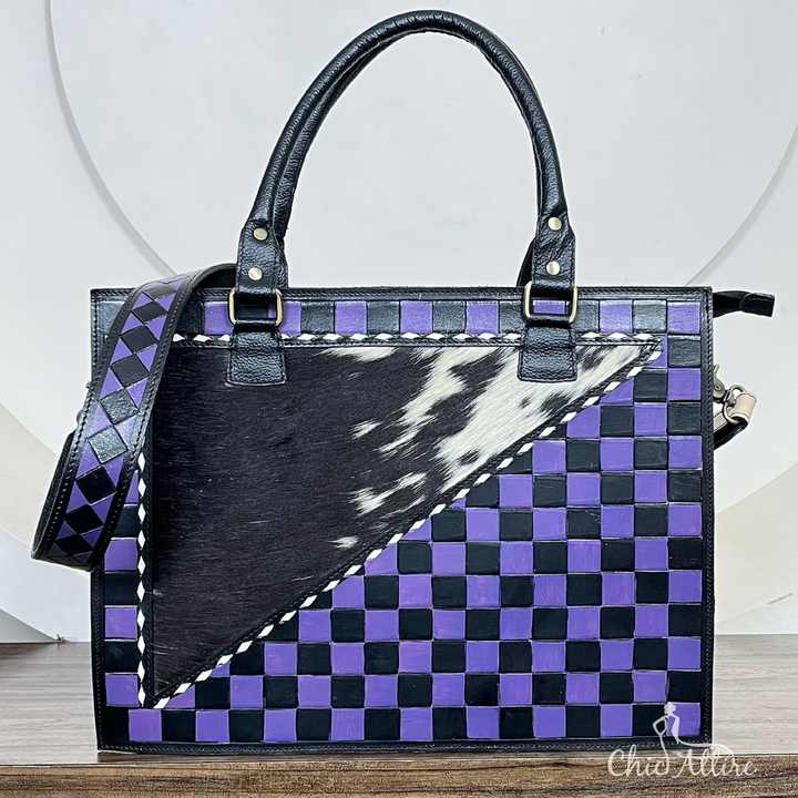 Product name:Hand Tooled Checkered Leather Tote Bags