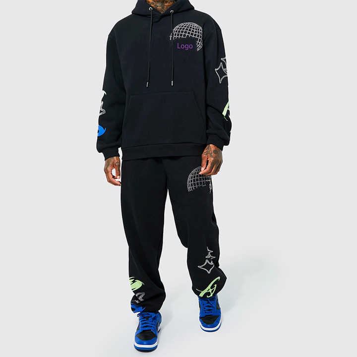 Customized Unisex Track Suit Custom Print Logo Private Label Sweat Suits Heavy Weight Sweat Pants and Hoodie Two Piece Set Men