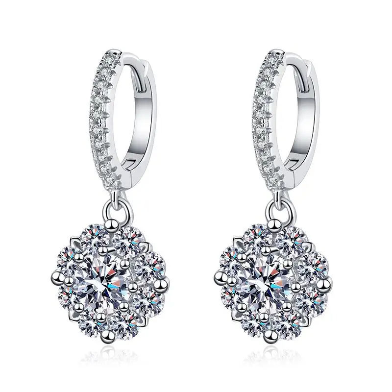 Hot Selling 925 Silver Drop Earrings New Trendy VVS Wedding Fine Geometric Flowers Pattern Rhodium Plated Gold Christian