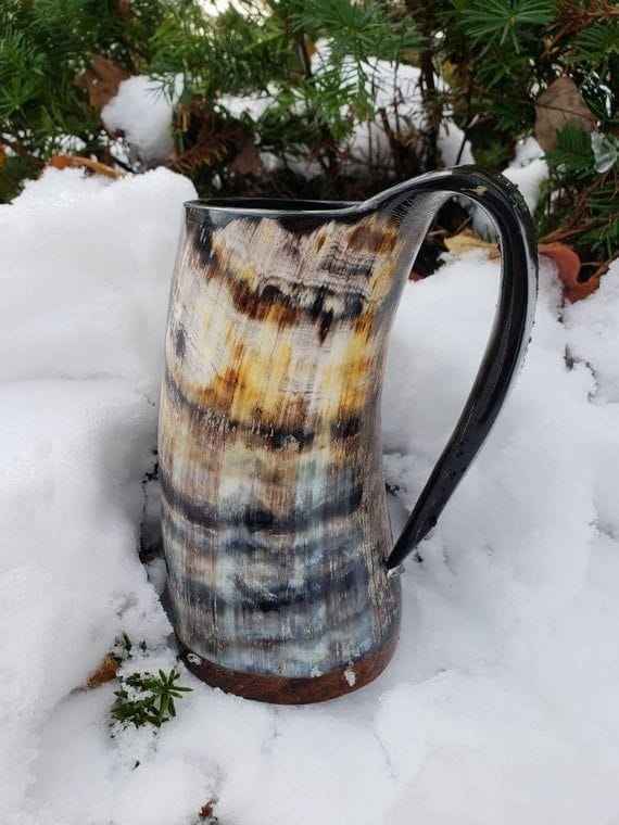 Customized Vintage Buffalo Horn Mug Cow Horn Viking Drinking Beer Mug New Design Ceramic Cow Horn Mug for Coffee Custom Logo Koi