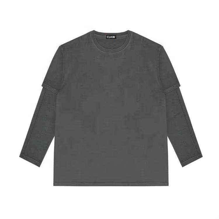 Customized Vintage Heavyweight Camo Streetwear for Men Thermal Colorful Blank T-Shirt Custom Double Layer Long Sleeve T-Shirts