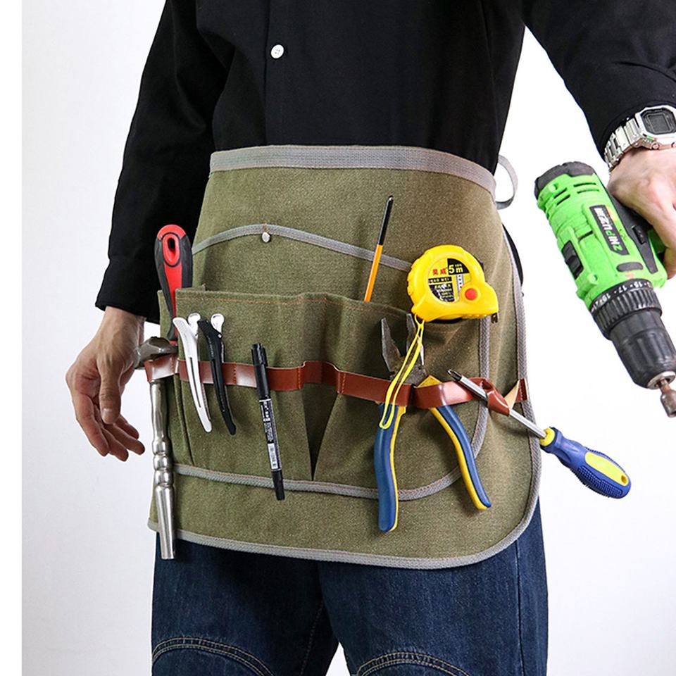 Customized Waxed Canvas Half Apron Leather Tool Holder Straps Waist Apron Multi-use Adjustable Strap with Tool Pockets