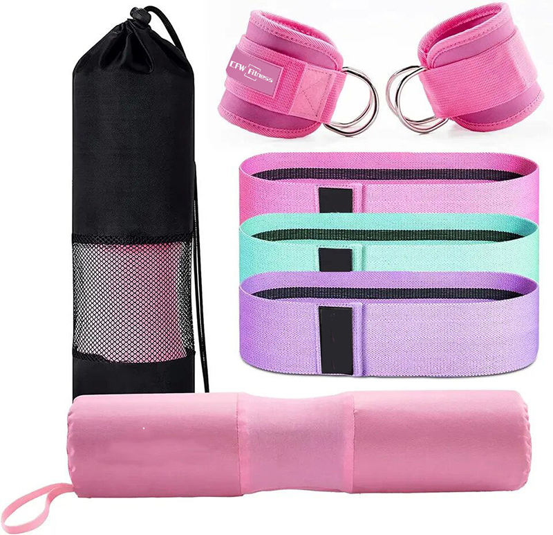 Customized Weightlifting Foam Barbell Pad Squat Pad Set with Ankle Strap and Fitness Hip Bands Workout Fabric Booty Band.