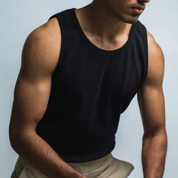 Mens Relaxed Fit Brown Tank Top Comfortable Cotton Sleeveless Gym Shirt with Front Logo Design for Sport and Everyday Style