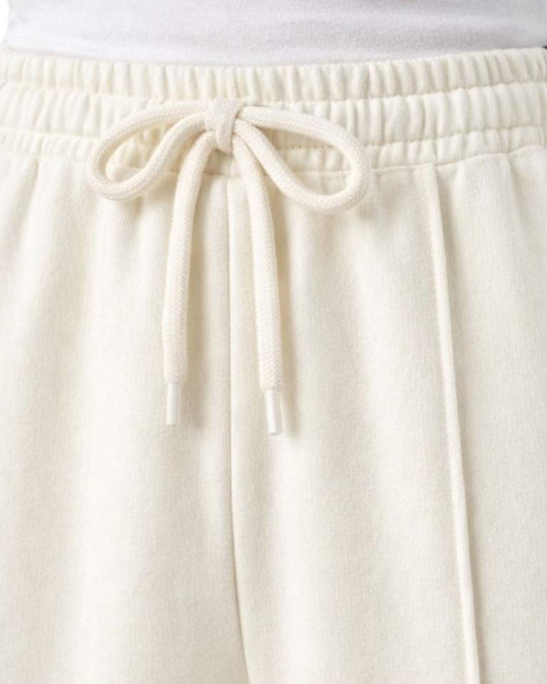 Customized White Women Wide Leg Sweatpants Side Piping Elastic Waist Drawstring Casual Loose Fit Straight Leg Trousers Lounge