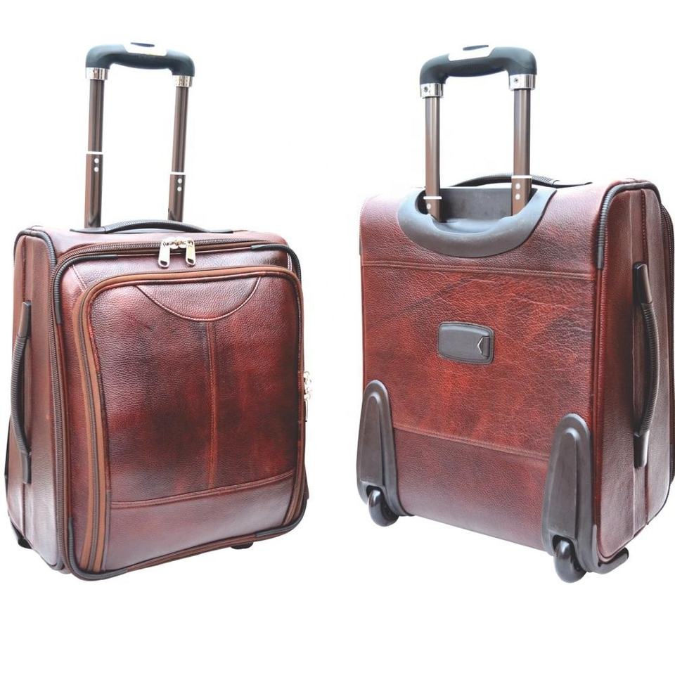 Customized Wholesale 100% Genuine Leather Travel Trolley Luggage Bag for Men Women Leather Suitcase Travel Trolley Bag