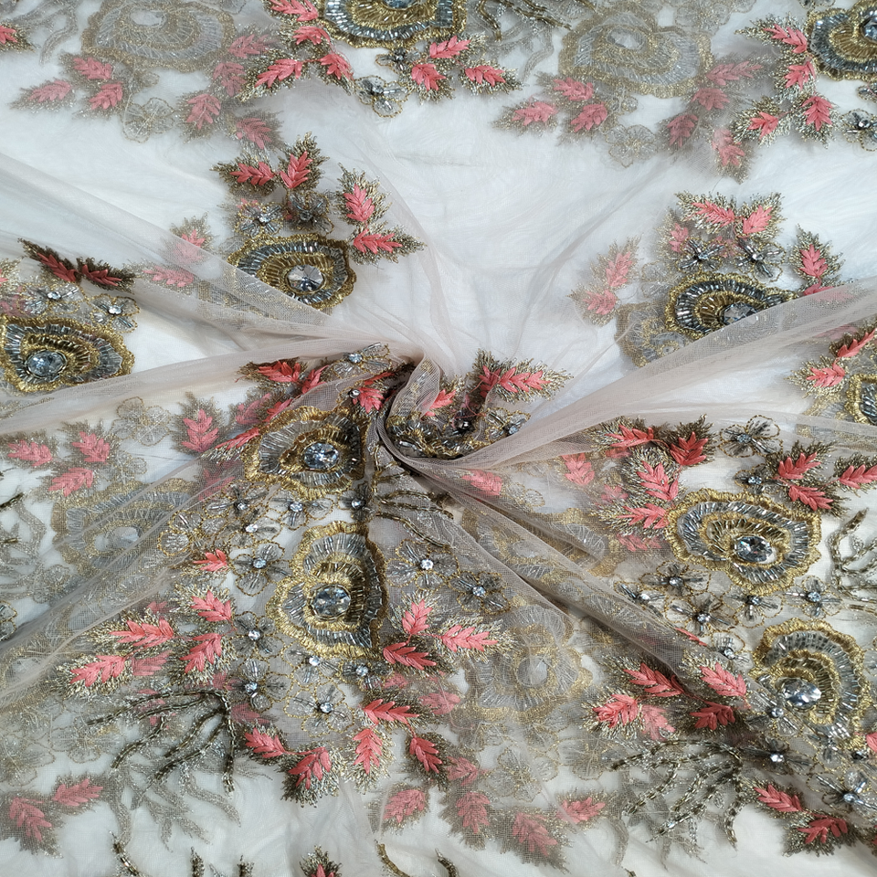 Customized Wholesale Bridal Net Lace Fabric Exquisite Sequin Beaded Floral Embroidery Design for Wedding Party Dress Gown Lace
