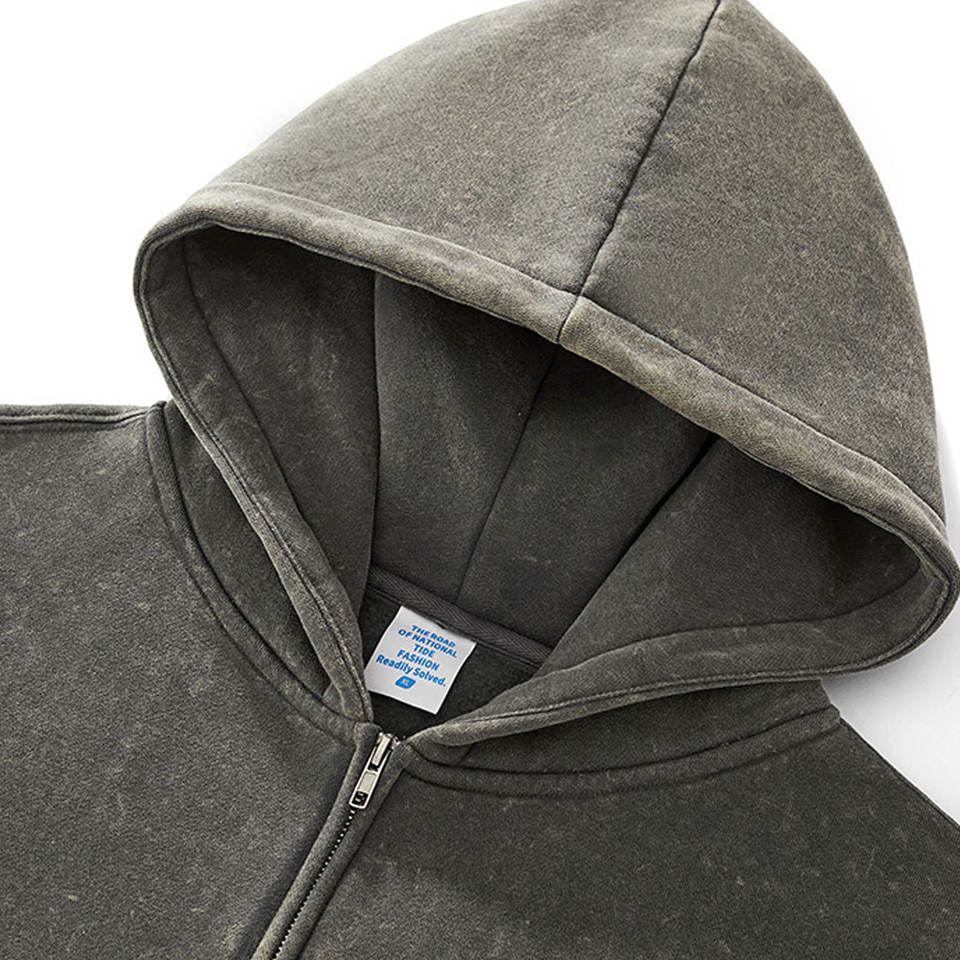 Customized Wholesale Heavyweight 360GSM Acid Washed Double Zipper Fleece Hoodie Cardigan Oversized High Quality Jacket