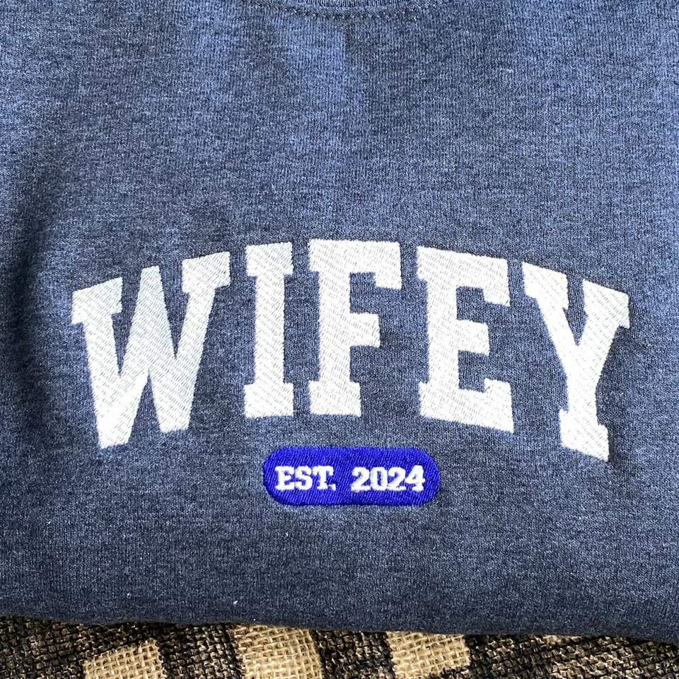 Customized Wifey Est 2024 Crewneck Sweatshirt Embroidered Engagement Gift for Bride New Wife Winter Knitted 3D Pattern