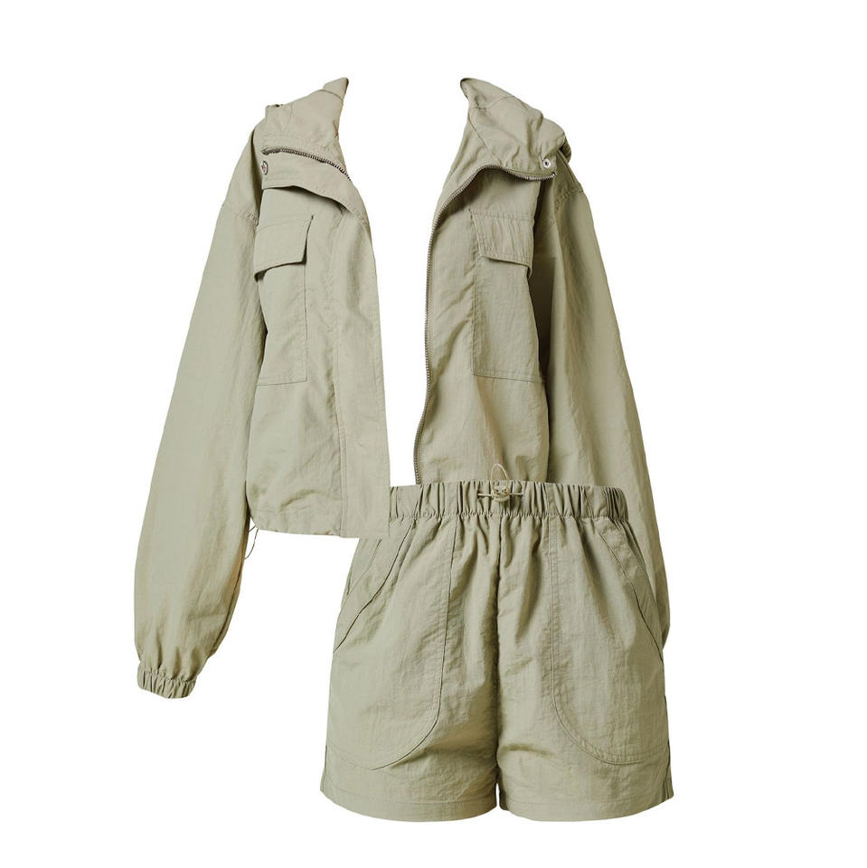 Customized Breathable Solid Windbreaker Short Tracksuit Set Two Pieces Jogging Set Unisex Windbreaker Jackets and Shorts