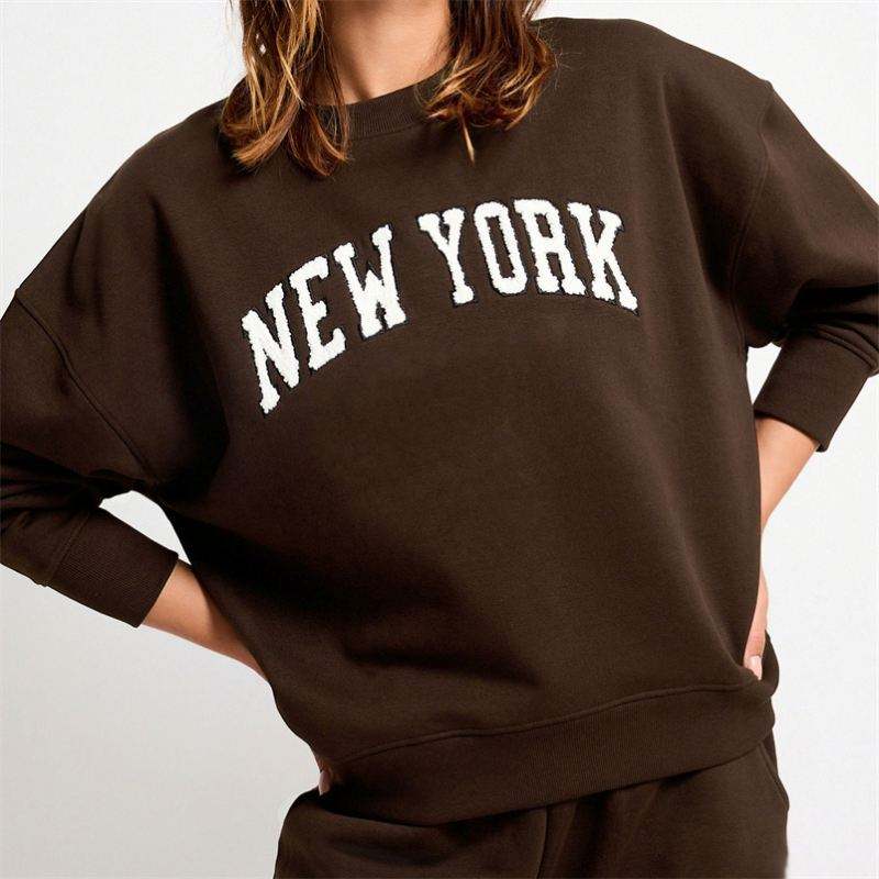 Customized Woman Jogger Set Sweatsuit High Quality Vintage Brown Loose Fleece Sweat Pants Solid Patchwork Casual Style Jumper