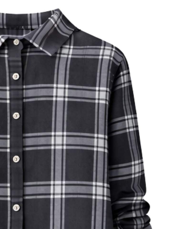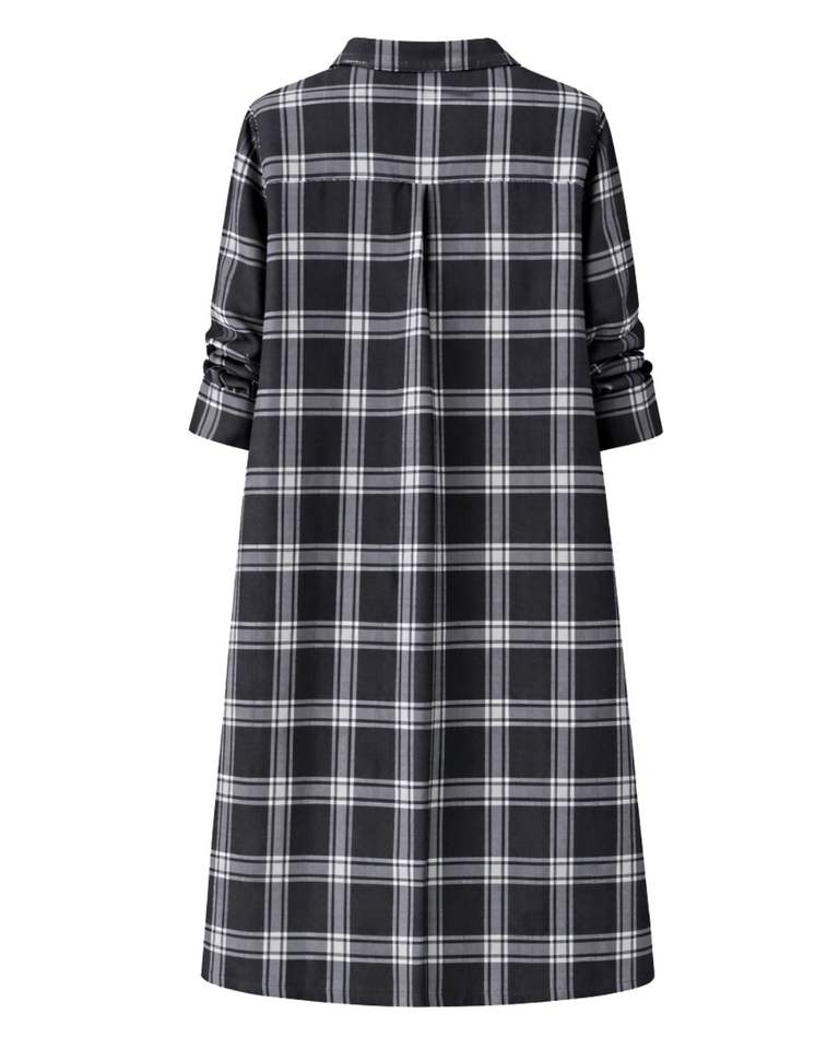 Customized Women Black Plaid Shirt Dress Long Sleeve Button Down Midi Casual Loose Fit Cotton Woven With Pockets Daily Wear