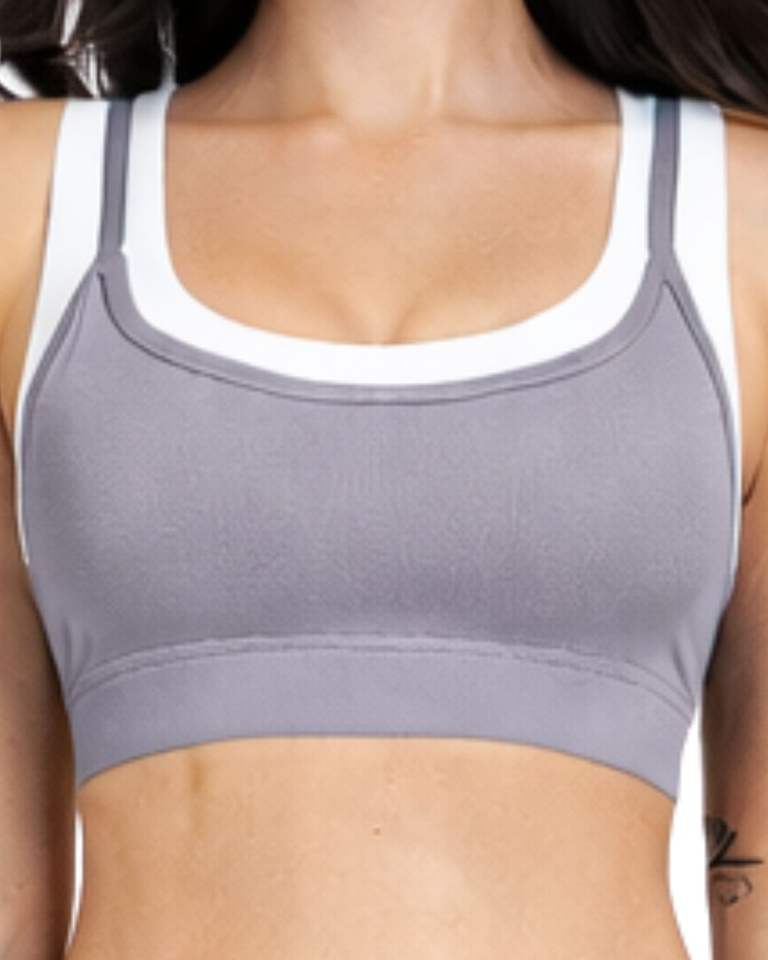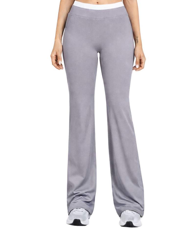 Customized Women Grey White Contrast Sports Bra & Flare Pants Set High Waist Stretch Yoga Fitness Gym Wear Custom OEM Wholesale