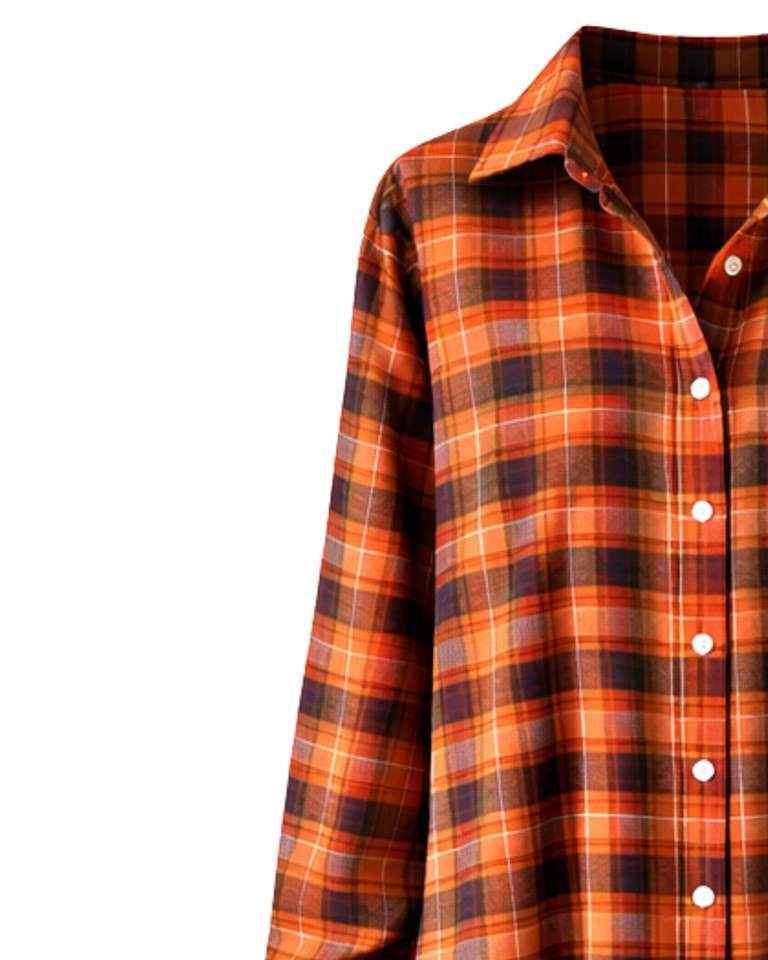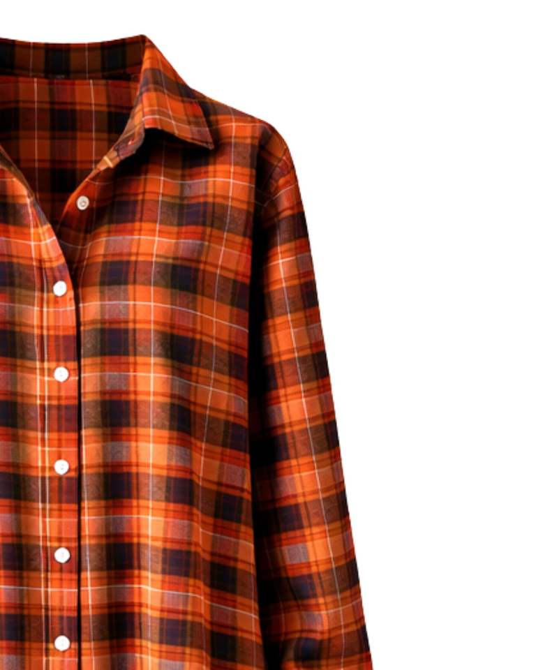 Customized Women Orange Plaid Long Shirt Dress Button Down Oversized Tunic Casual Loose Fit Full Sleeve Soft Cotton Flannel Wear