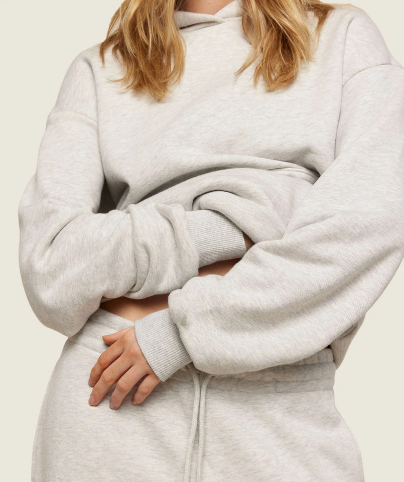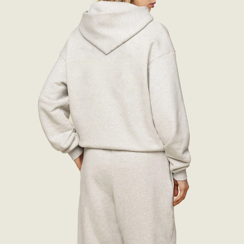 Customized Women's 100% Cotton Tracksuit 300GSM Loose Fit Hooded Pullover Haither Grey 2 Pcs Set Women's Pullover Tracksuit