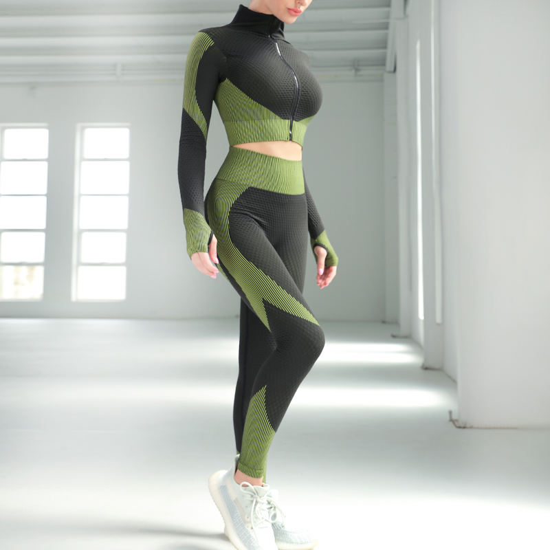 Customized Women's 2-Piece Gym Workout Set Skinny Fitness Yoga Bra & Leggings Solid Pattern Seamless Fitness Tracking Set