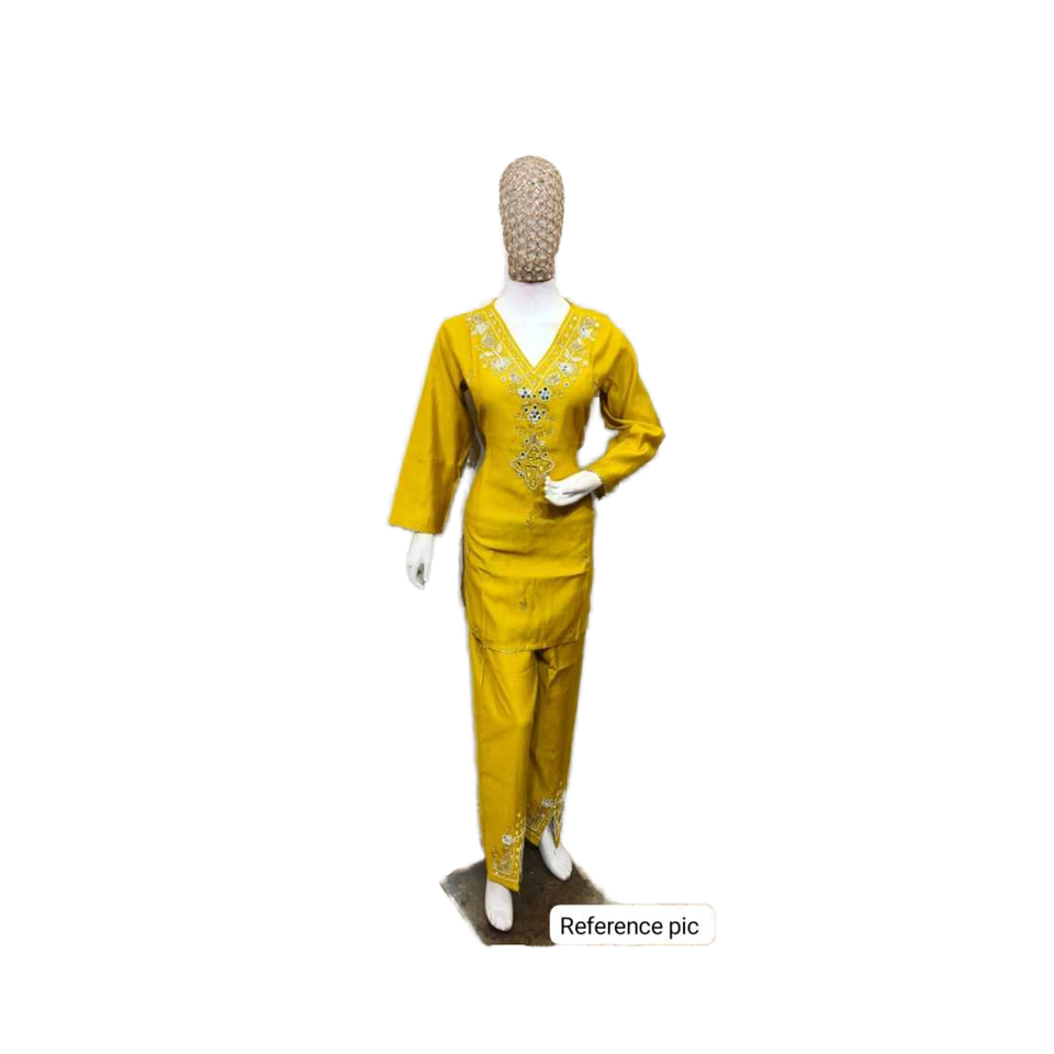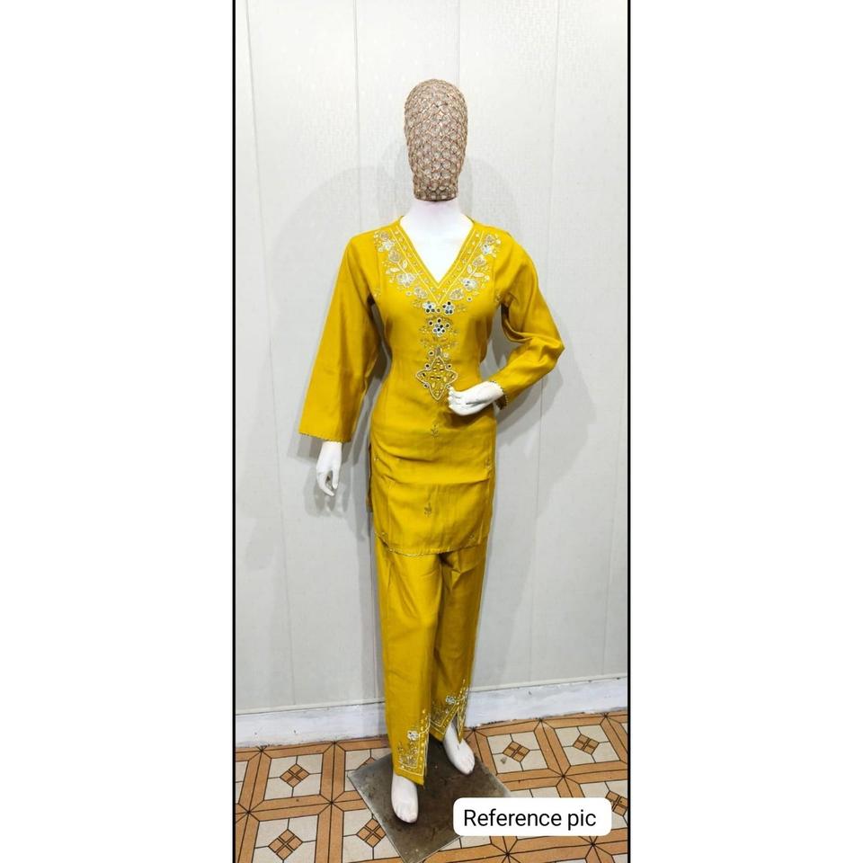 Customized Women's Elegant yellowish Cord Set for Office and festival Wear wholesale Cord Set Printed Indian Ethnic kurtis set