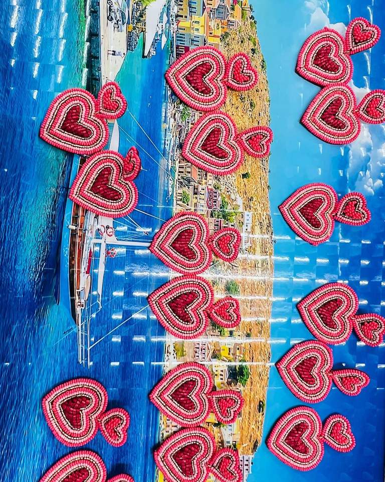Customized Women's Heart Seed Beaded Earrings Unique Handcrafted Christmas Colors Designs Christian Symbol for Gift