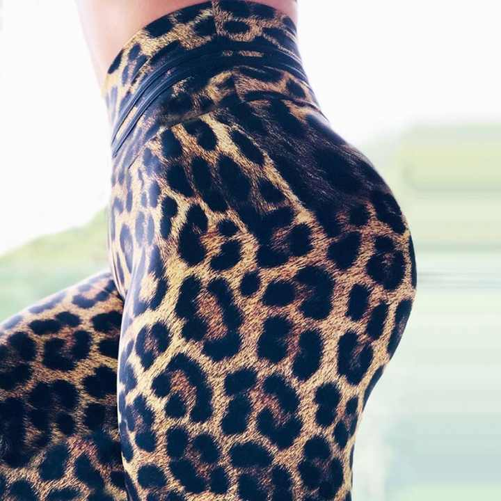 Customized Women's Leopard Print Yoga Leggings Yoga Clothes Elastic Tight-fitting High-waist Pants Sports Fitness Pants