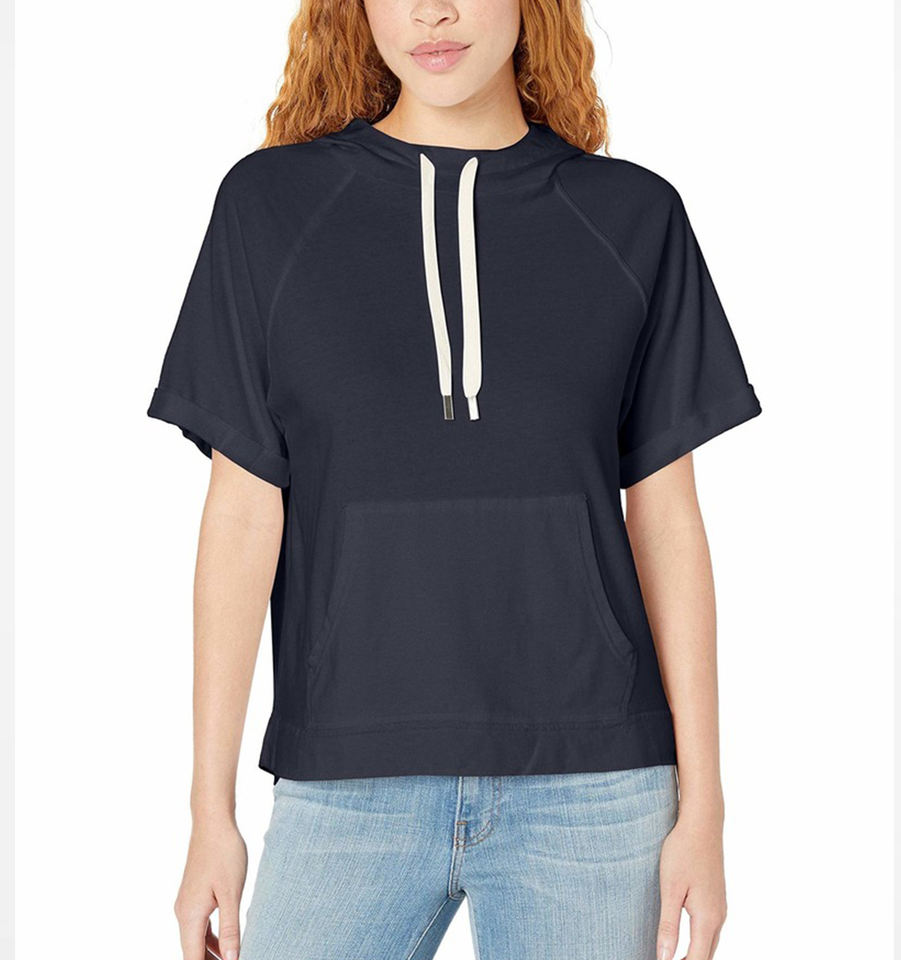 Customized Women's Oversized 1/4 Zip Pullover Hoodie Cotton Fleece Short Sleeve Jumper Knitted Blank Sweatshirt
