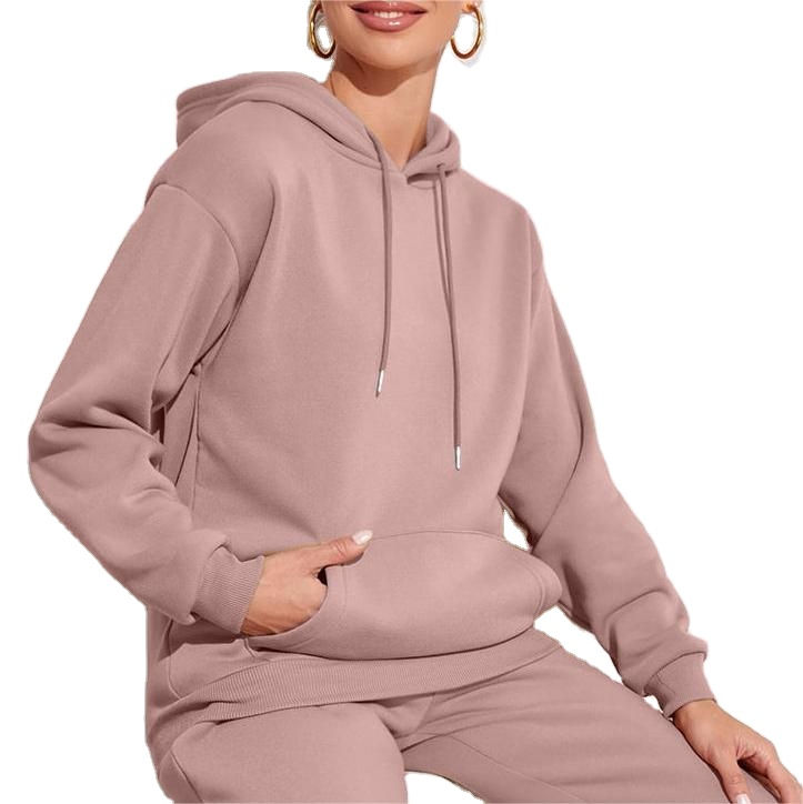 Customized Women's Sportswear Hoodie 100% Polyester Winter Autumn Printed Drop Shoulder with Embroidered Logo Hooded Collar