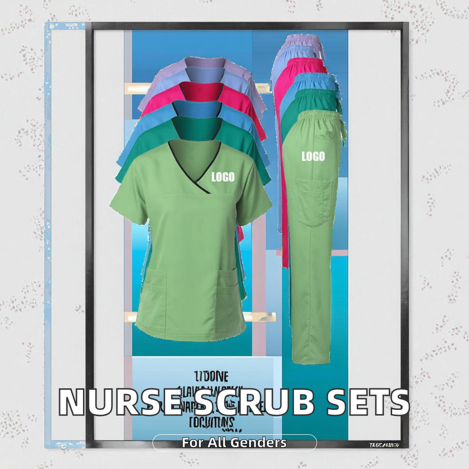 Customized Women's Stretch Spandex Stacked Pants Scrub Sets Hospital Uniforms Nurses Nursing Scrubs Suit Jogger Uniforms