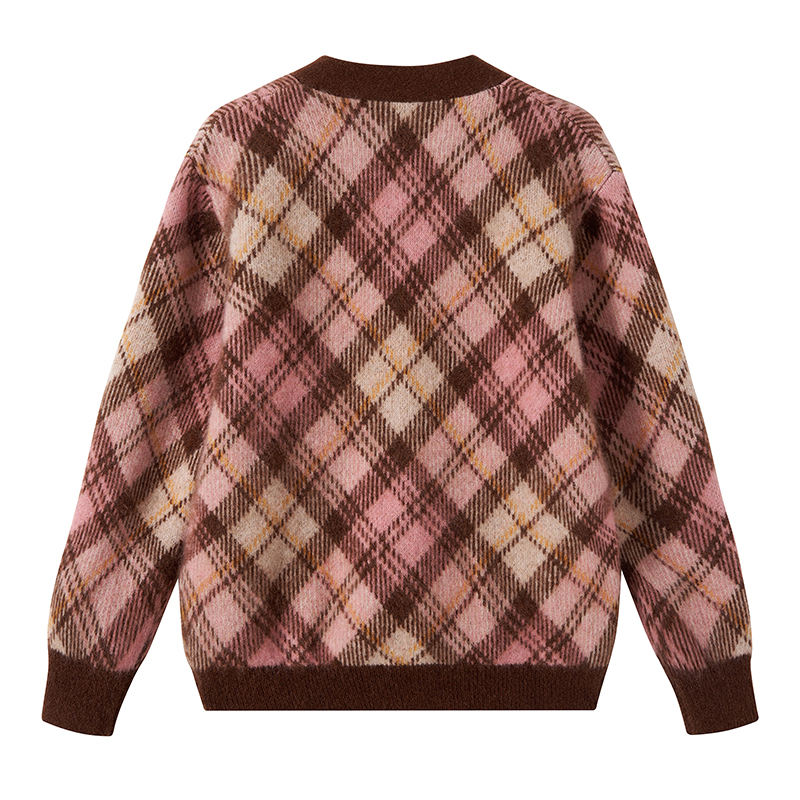 Customized Women's V-Neck Knit Cardigan with Button Argyle Chunky Jumper Casual Oversize Mohair Sweater for Winter