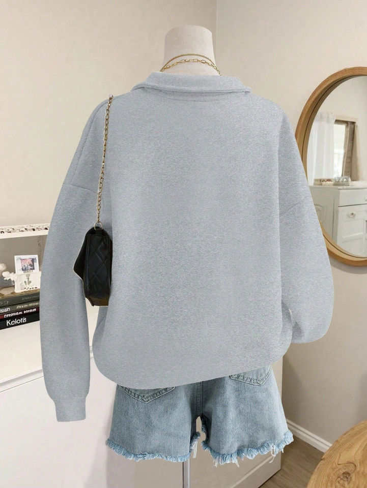 Customized Women's half zip Solid Color Fleece Hooded Sweatshirt, Thick & Warm Fleece Sweatshirt For Ladies