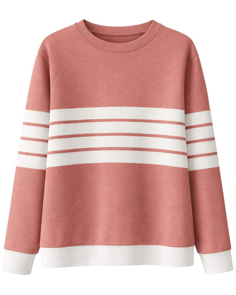 Customized Womens Pink Striped Crew Neck Sweater And White Wide Leg Pants Two Piece Set Casual Winter Knit Outfit