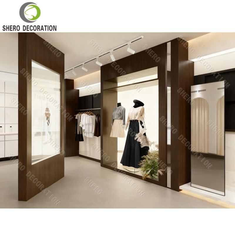Customized Wood Shop Counter Metal Clothing Display Rack Durable Clothing Store Furniture For Lady Clothing Shop Interior Design