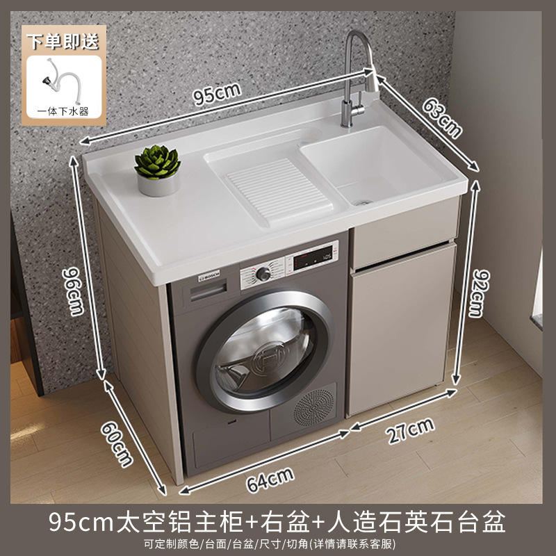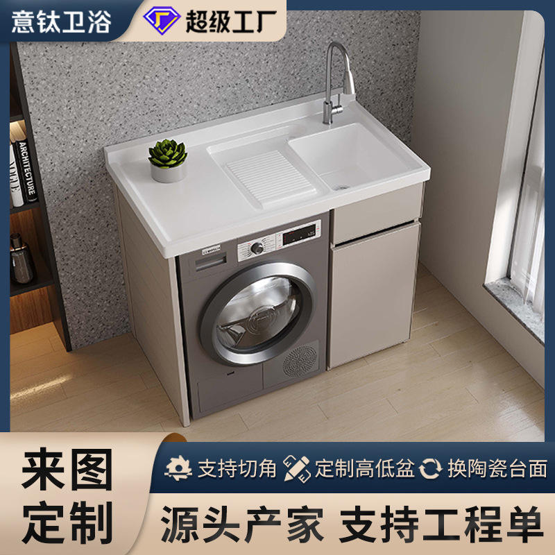 Customized Yiti High/Low Cut-Angle Basin Balcony Cabinet Quartz Countertop Integrated Washboard Washing Storage Shelves Units No