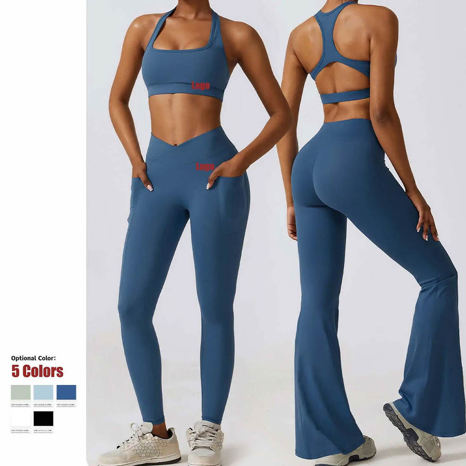 Customized Yoga Gym Wears Athletic Ribbed leggings and Sports Bra Set Light Color Yoga Sets Women Fitness sets