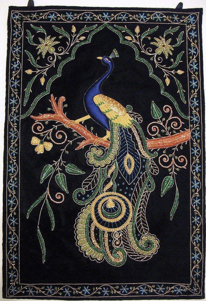 Customized Zardozi Arabic Jewel Wall Panel Peacock Design Handmade Embroidered Carpet Royal Look Villa Decor