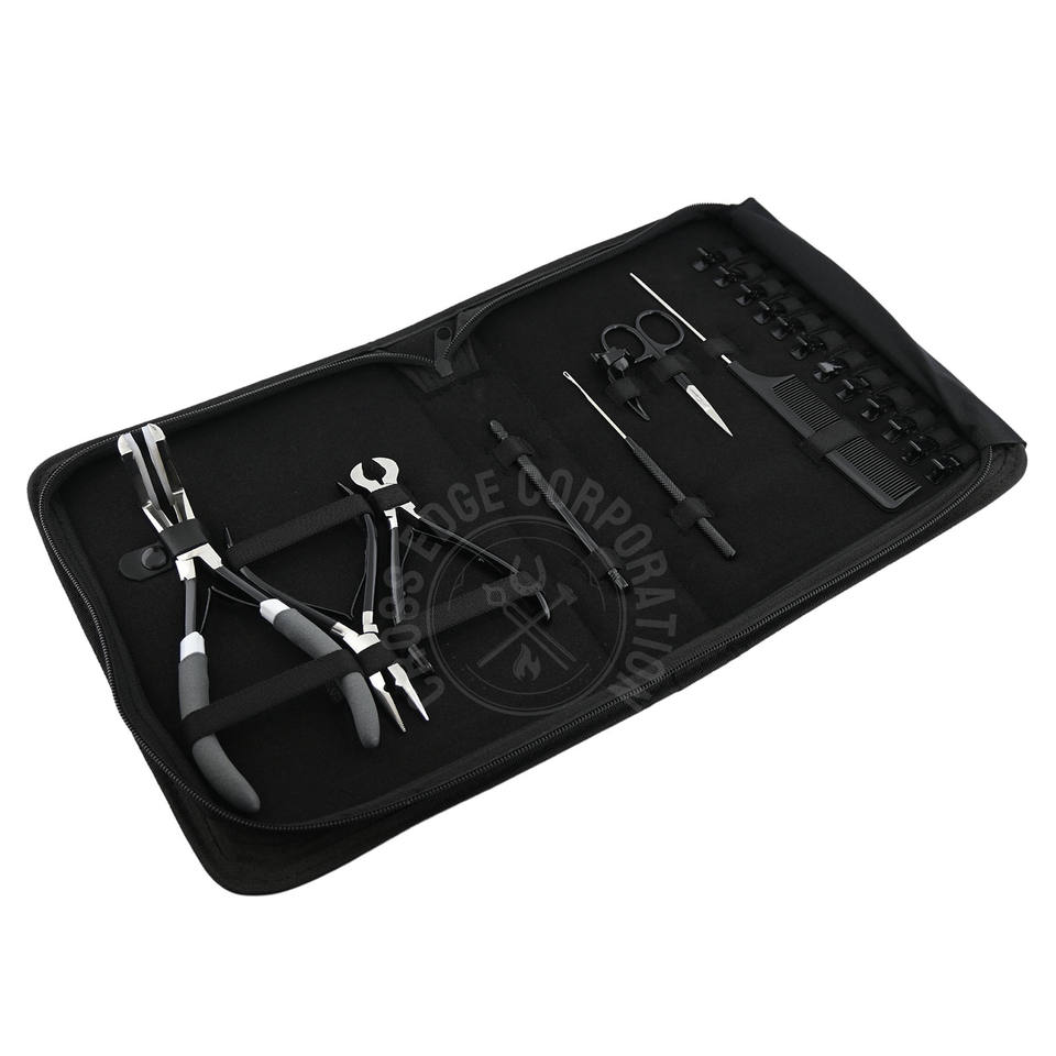 Customized Black Color 12pcs Hairdressing Sectioning Clips Hair Tool with Loop & Hook Microlink Hair Tape & Crimped Waves Plier