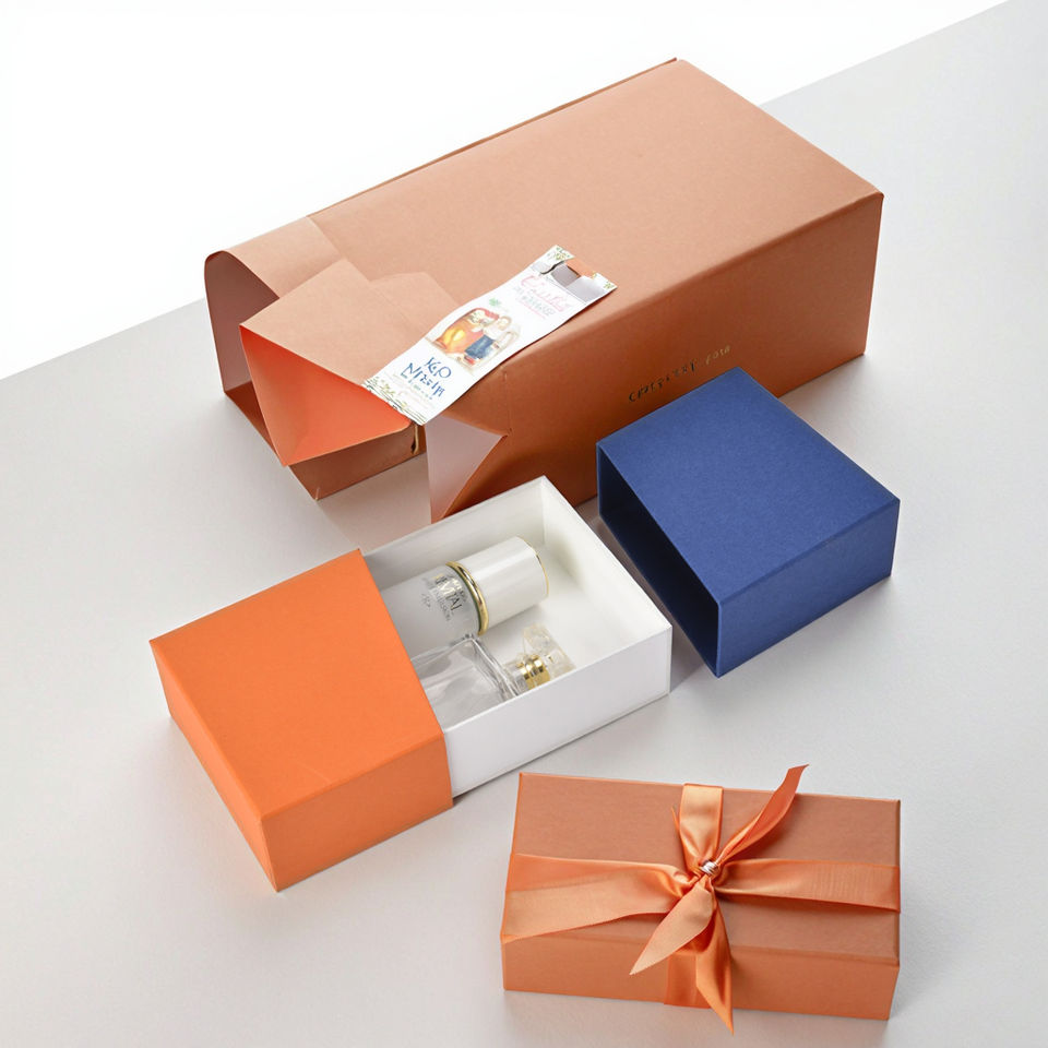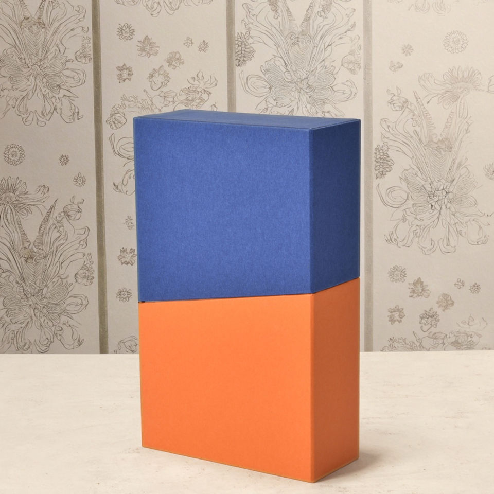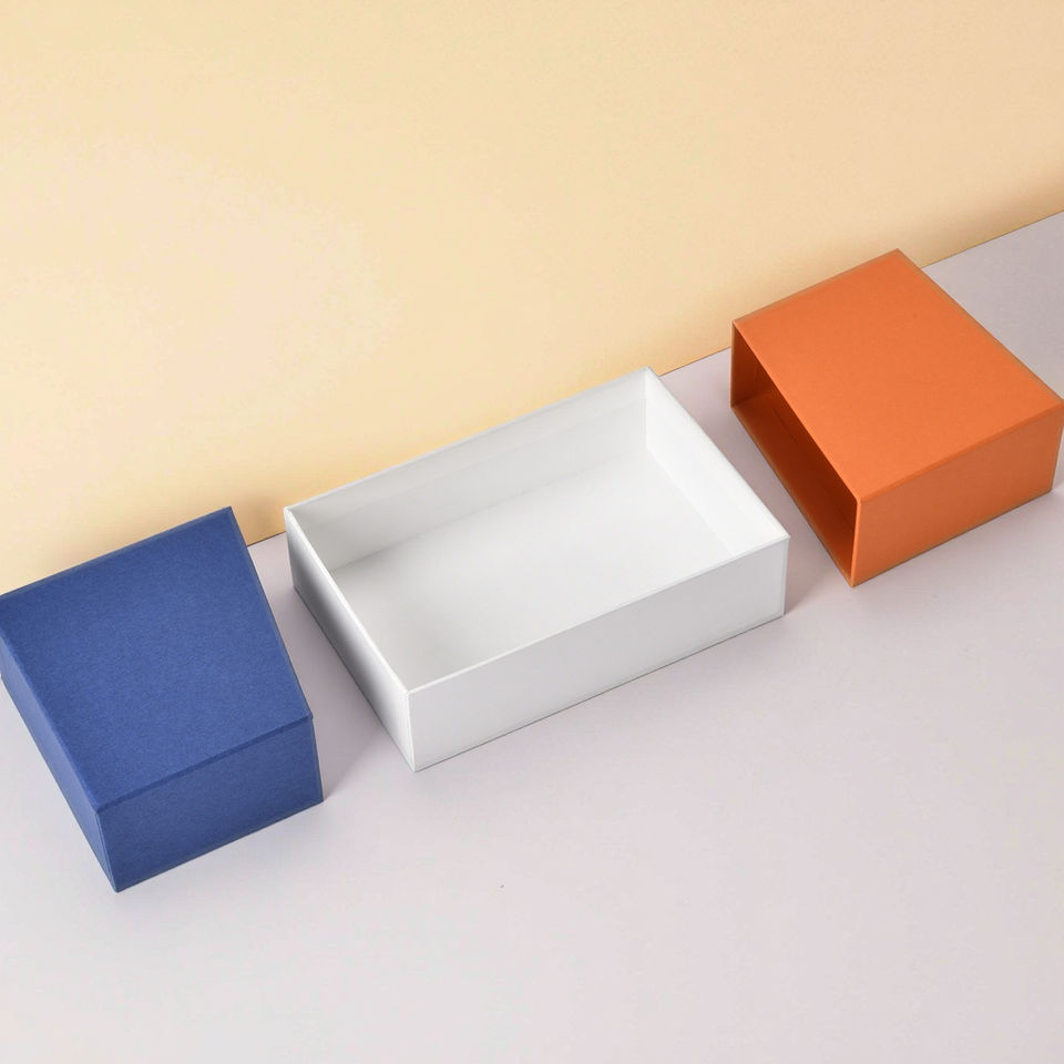 Customized color creative drawer gift box with orange and blue patchwork design paper packaging box