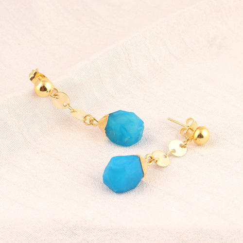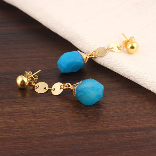 Handmade jewelry fancy shape dyed agate gemstone with coin link chain stud drop earring brass gold plated long pair earring