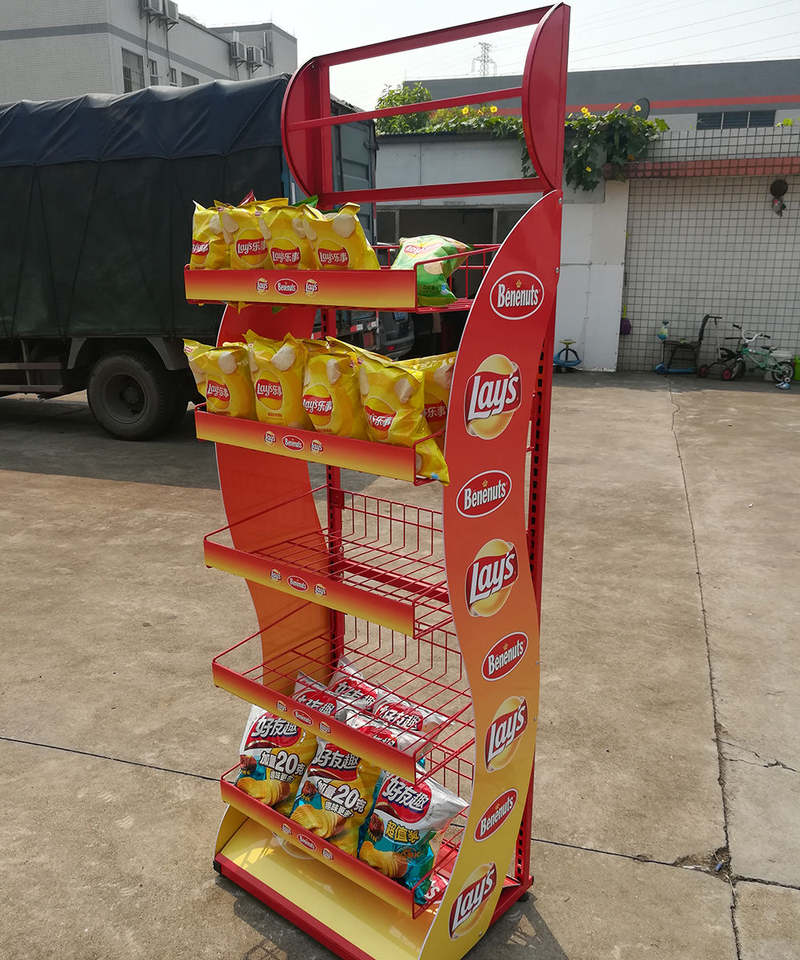 Customized for Display Furniture for Snack Packet Food Merchandising Rack Hooks Trays for Chips Biscuits Display Easy