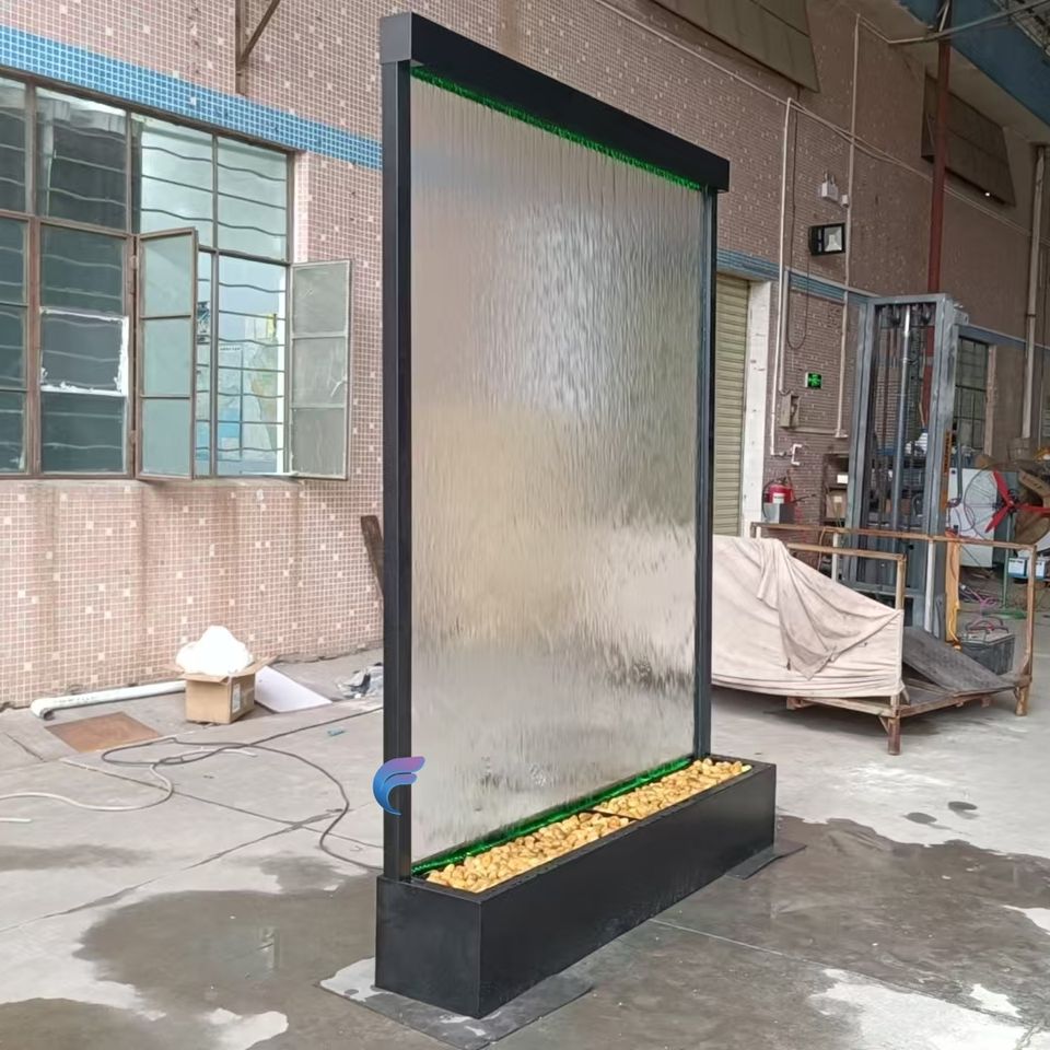Customized garden floor standing stainless steel waterfall water cascade water feature glass waterfall
