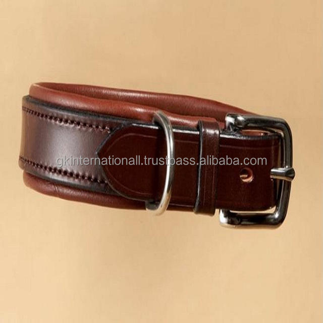 Customized Handcrafted Dark Brown Grain Leather Dog Collar Durable Stitching & Soft Padded Pet Collar with Nickel Plated Buckle