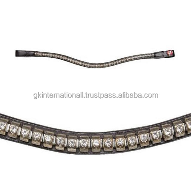 Customized Handmade Empty Channel Inlay Large Crystals Stones Bling Chain Black Leather Padded Horse brow band with Snap Button