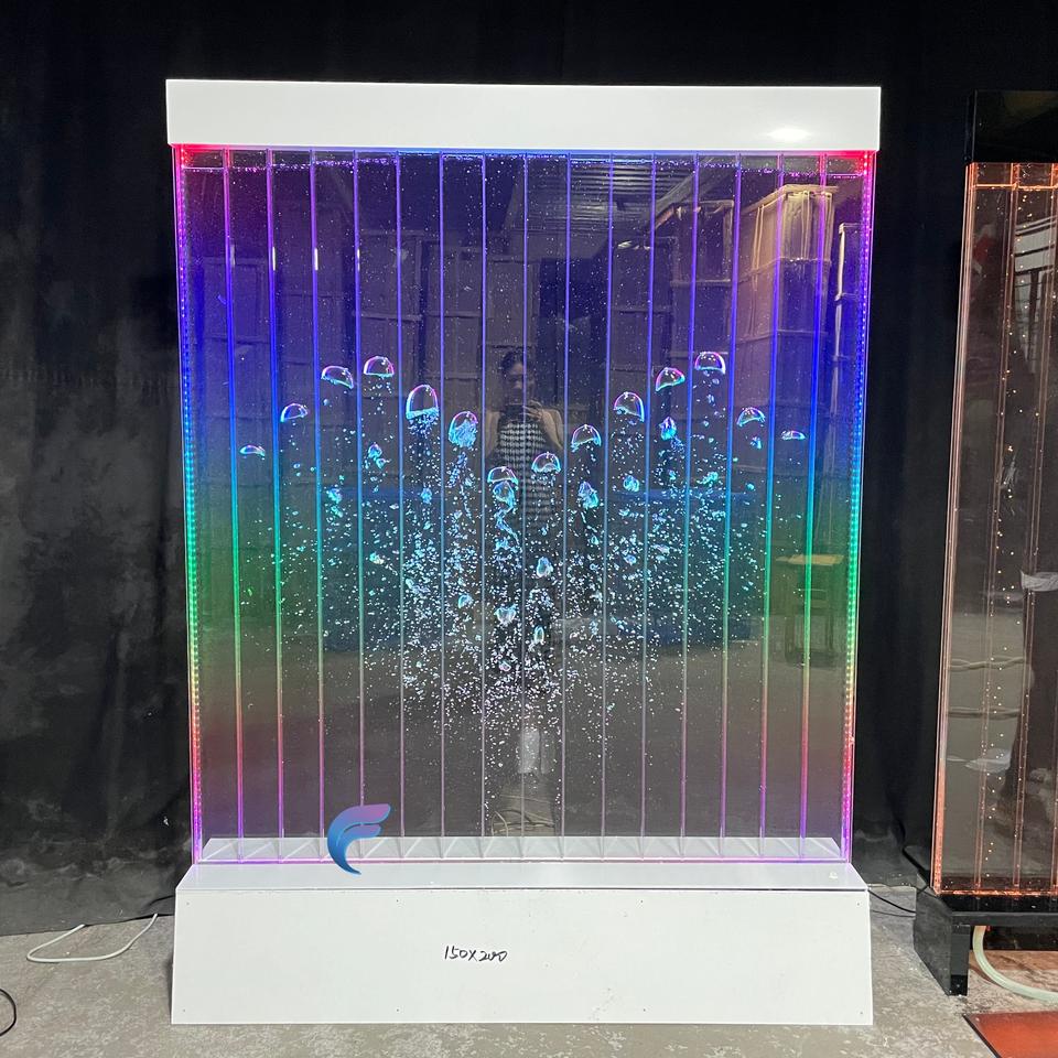 Customized indoor Led lighted dancing fountain aquarium screen water bubble wall