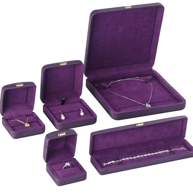 Customized leather jewelry box purple jewelry packaging rings bracelets necklaces earrings packaging boxes