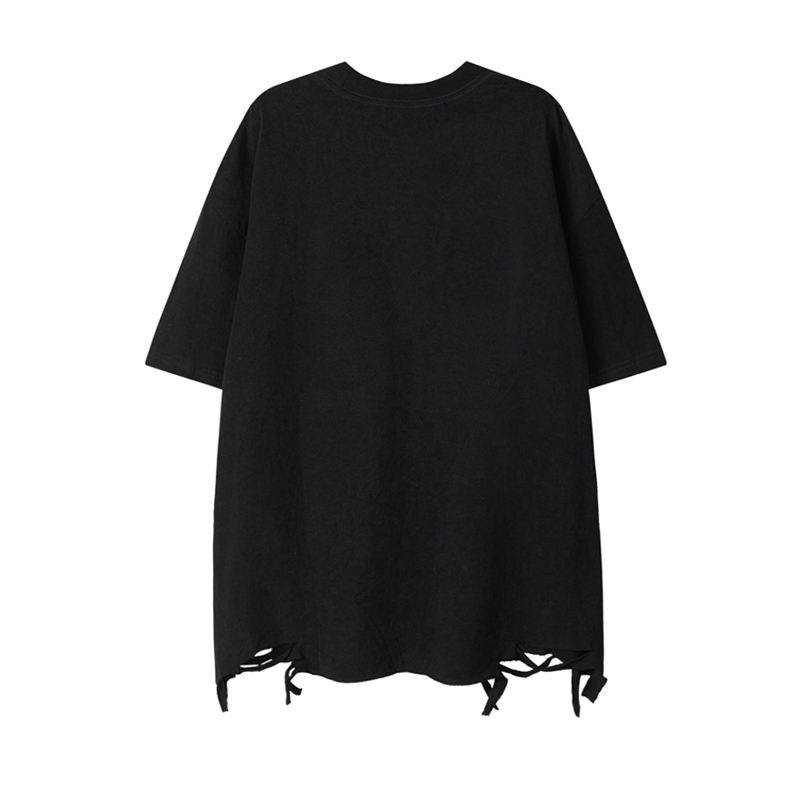 Customized logo European American hip-hop short sleeves make washed tattered T-shirts men's street necklaces half sleeves loose
