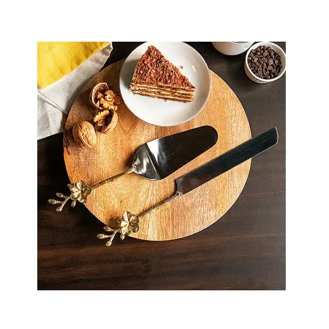 Customized logo Stainless Steel Cake Knife Set with Wood Handle for Party Kitchen Cutter Cake Brass Cake Knife Server