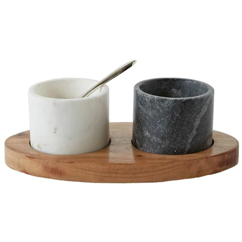 Customized Marble Salt and Pepper Bowl Round Shape Sugar Cube and Salt Pepper Bowl with Spoon Cheap Price