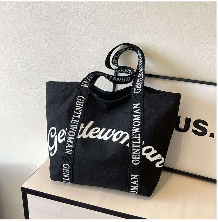 Customized shopping tote bag with letter logo printed cotton canvas bag and handle