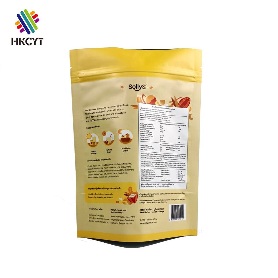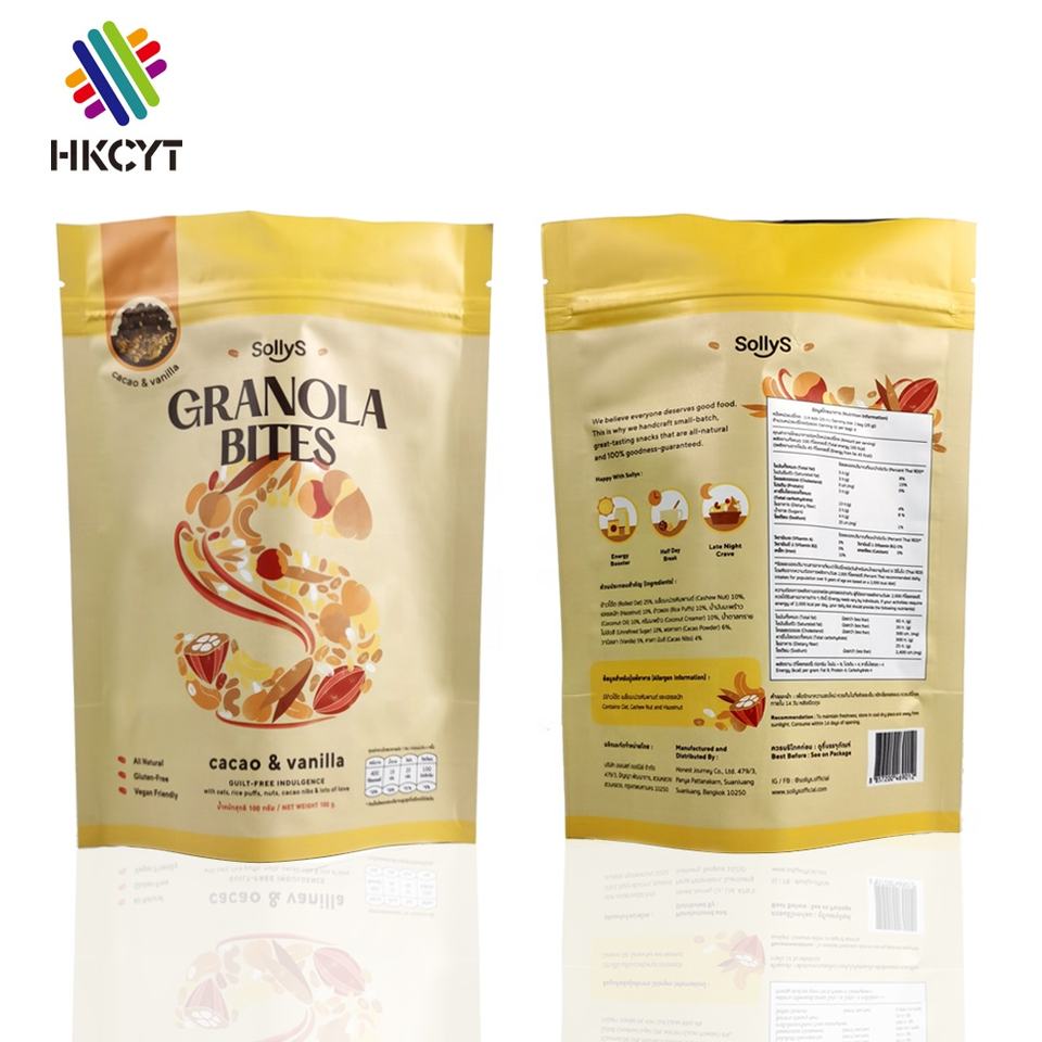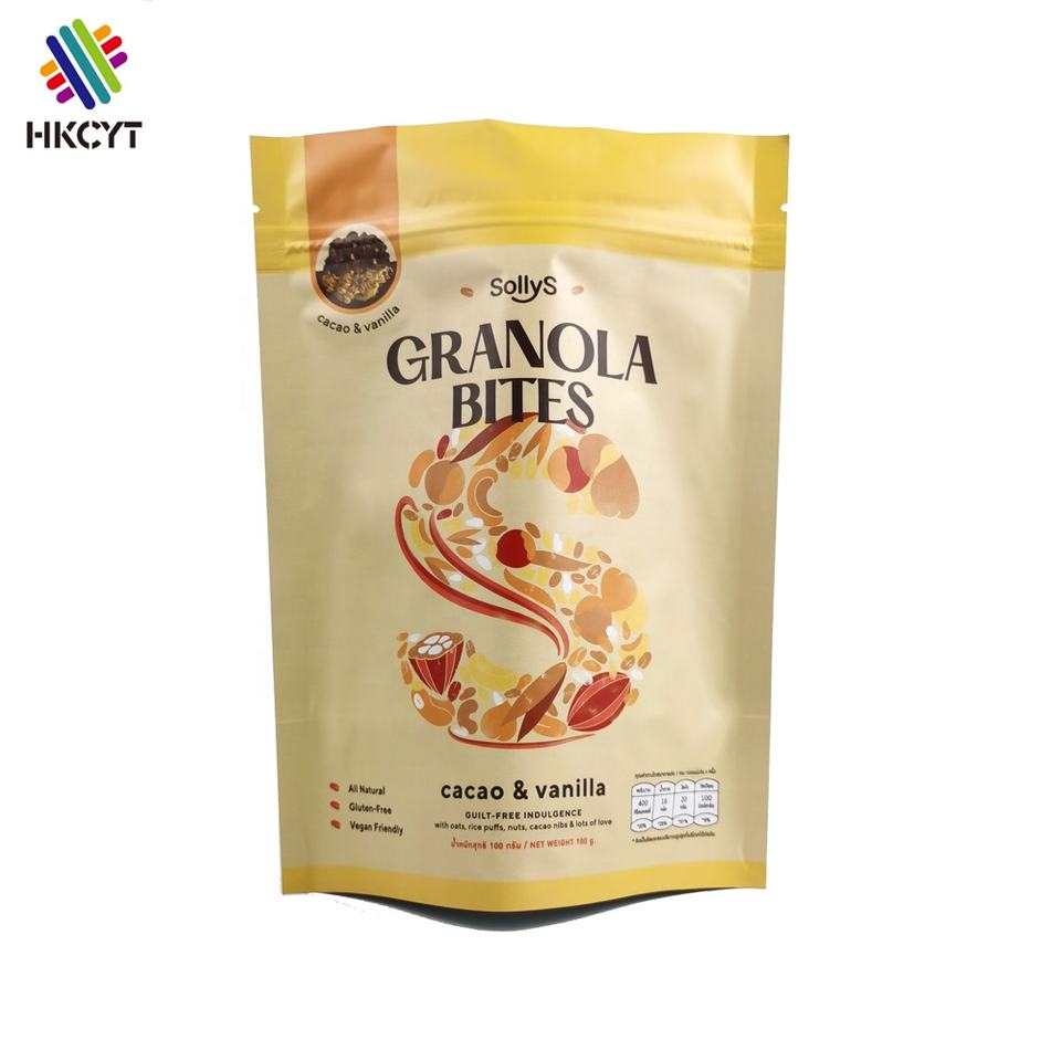 Customized Zipper Zip Lock Foil Lined Stand up Pouch Food Packaging Bag for Granola Nuts Snack