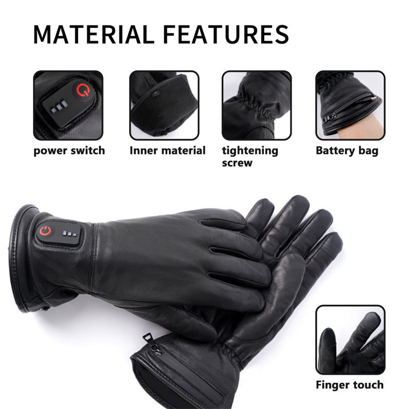 Genuine Leather Heated Gloves Rechargeable Electric Battery