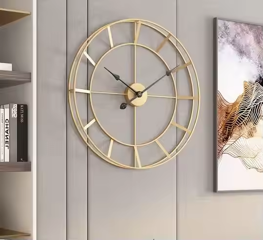 Azora Industries Luxury Digital Quartz Wall Clock Golden Decorative with Needle Display Art Deco Design for Home Living Decor