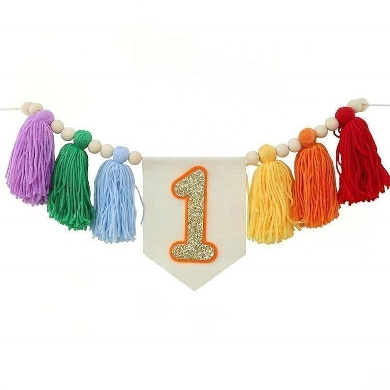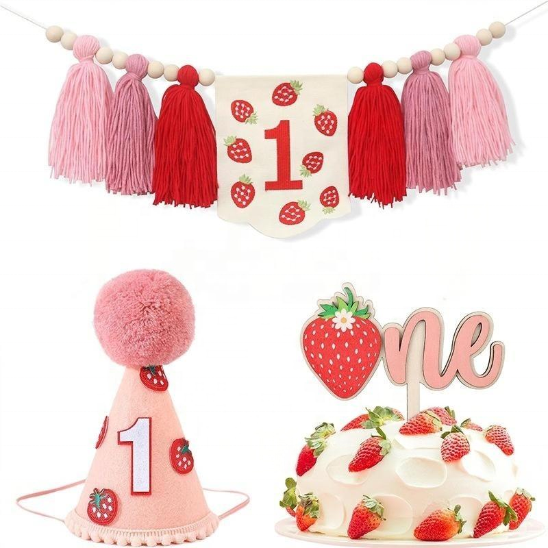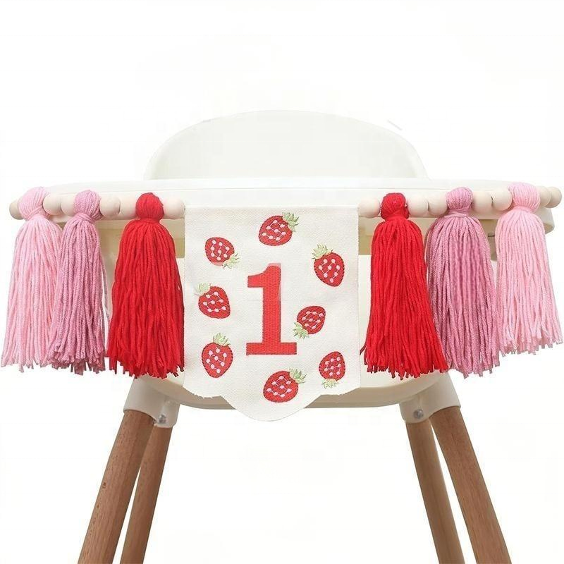 Cute 1st Birthday High Chair Tassels Banner Strawberry Theme Christmas Party Decoration for Baby Girl